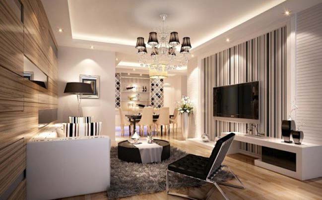 Đèn trang trí phòng khách phải thể hiện được sự ấm cúng và sang trong. Chúng ta có thể thiết kế cho phòng khách những ngọn đèn chùm, đèn tuýp, đèn hắt, hoặc đèn âm trần, âm tường…
