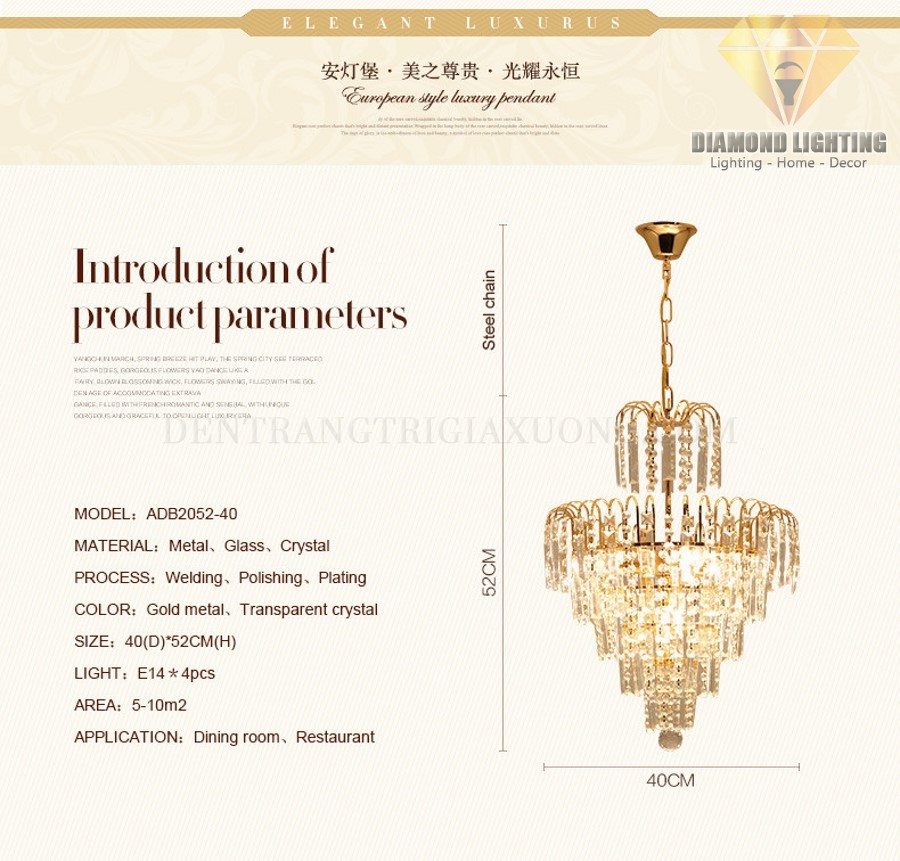 + Phù hợp với: Khách sạn, trung tâm thương mại, phòng khách, phòng ăn,...