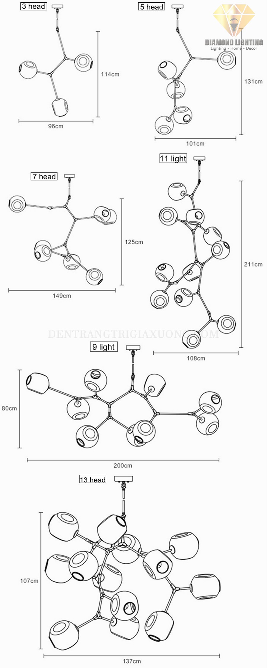 | Ứng dụng | Đèn tiền sảnh, trang trí phòng khách, trang trí bàn ăn, trang trí phòng ngủ - Diamond Lighting |