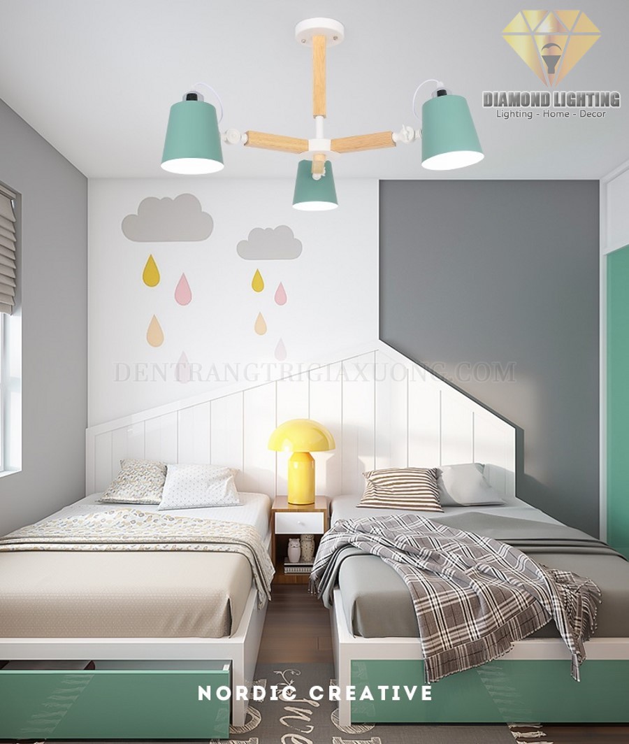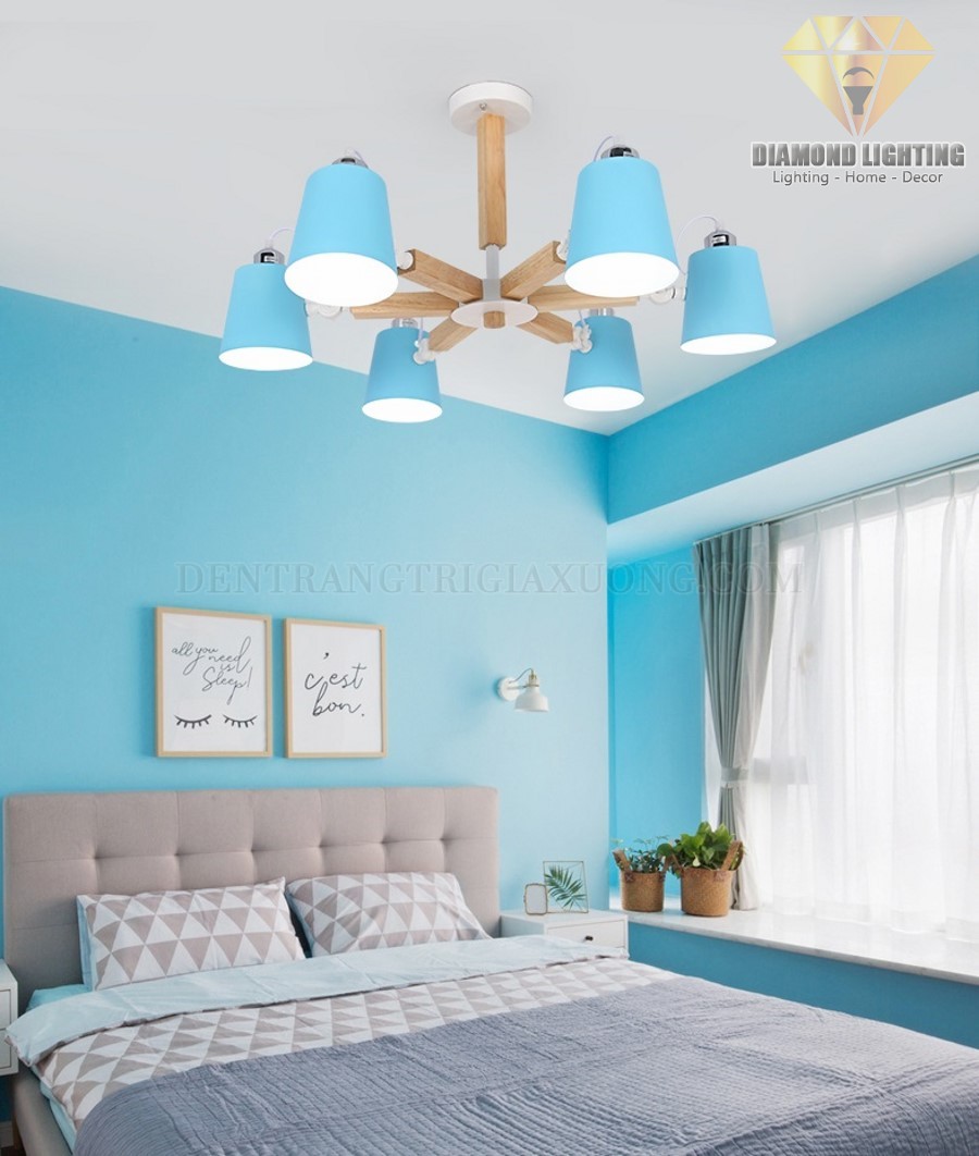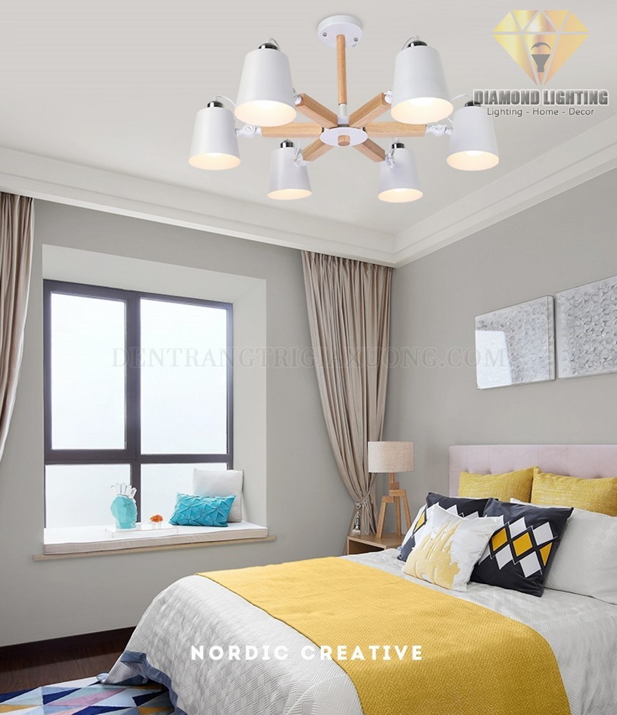Ngoài ra bạn vẫn có thể lắp đặt đèn chùm thân gỗ chụp sắt DCH170 ở giữa bàn ăn, trung tâm phòng ngủ hoặc giữa giường ngủ.