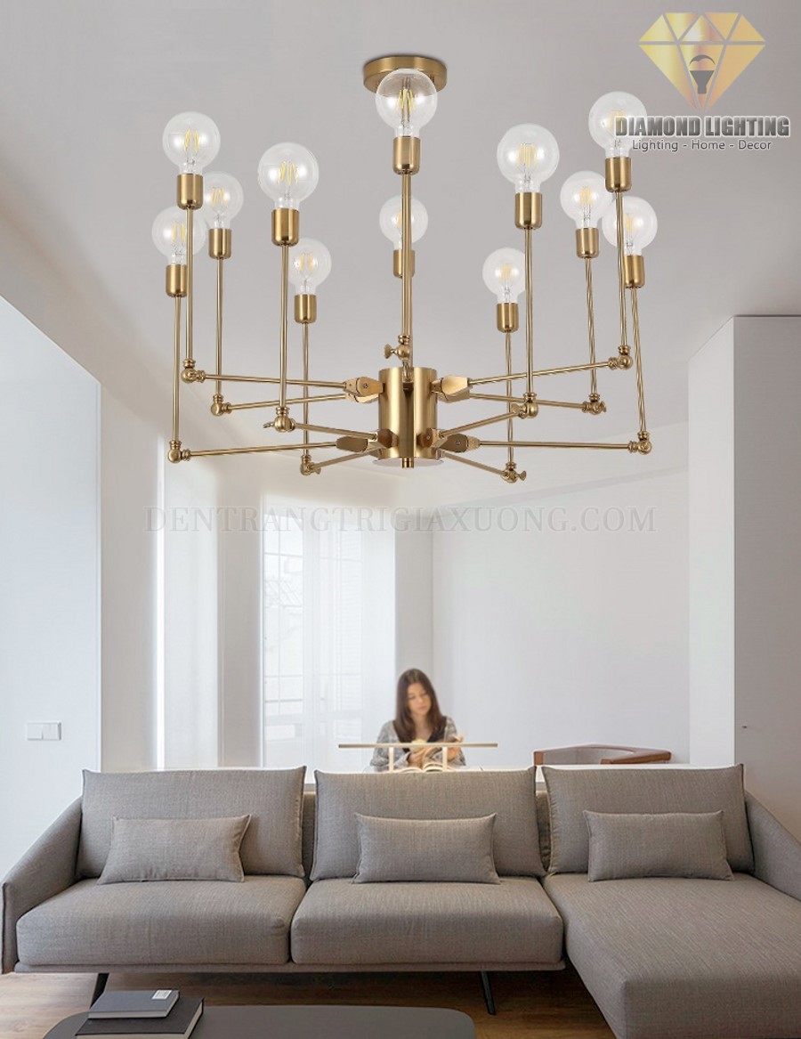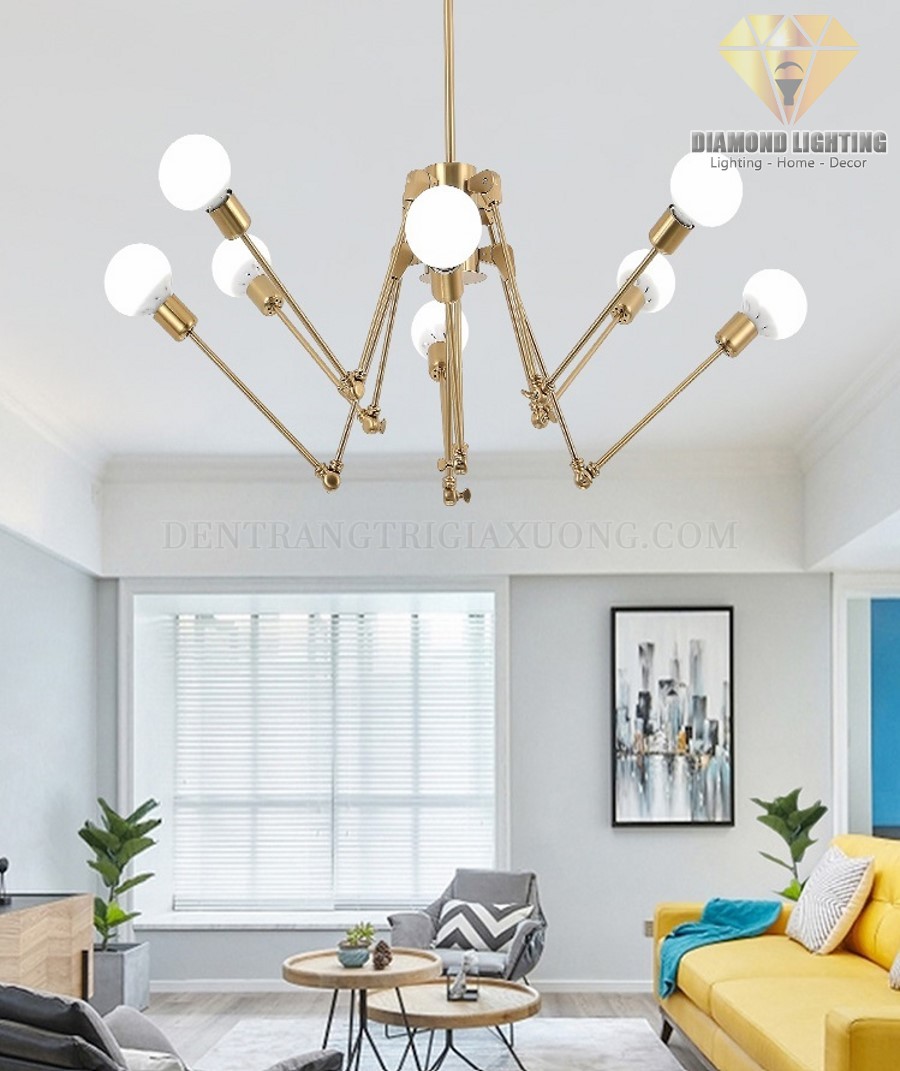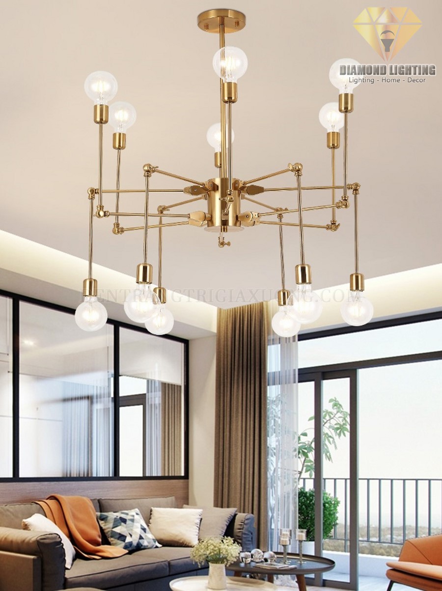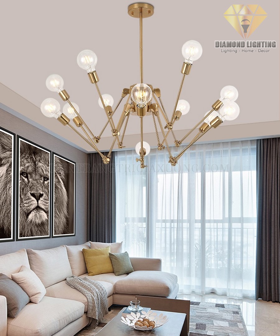 Đèn chùm thân nhện vàng đồng DCH070 thường được lắp đặt ở vị trí trung tâm phòng khách và thường được xem như là nguồn ánh sáng chính để vừa làm đèn chiếu sáng, vừa làm đèn trang trí.
