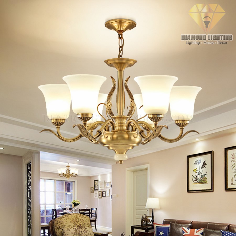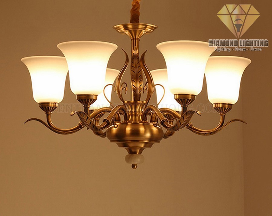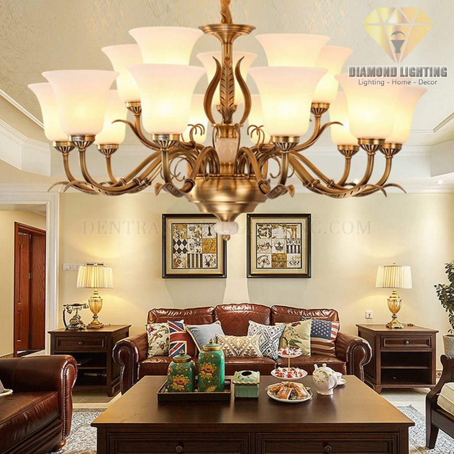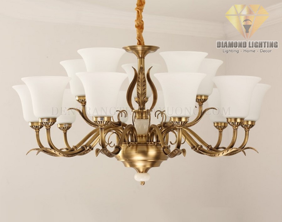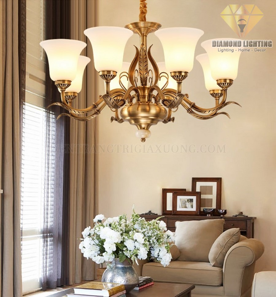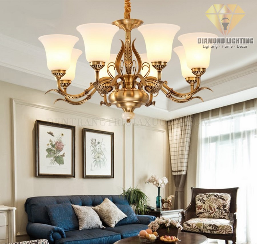 Đèn chùm chao đồng cao cấp DCC220 thường được lắp đặt ở trung tâm phòng khách để vừa làm đèn chiếu sáng, vừa làm đèn trang trí.